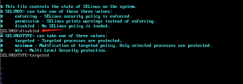 1 | vim /etc/sysconfig/selinux |