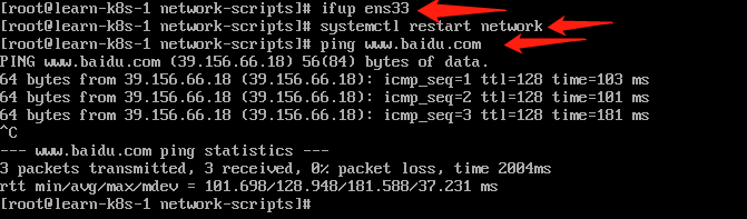 - 启动网卡 ens33,网络环境,测试网络。