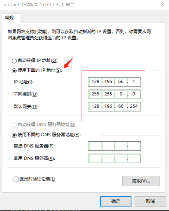 选择 使用下面的IP地址 ,自定义 IPv4 静态ip地址。