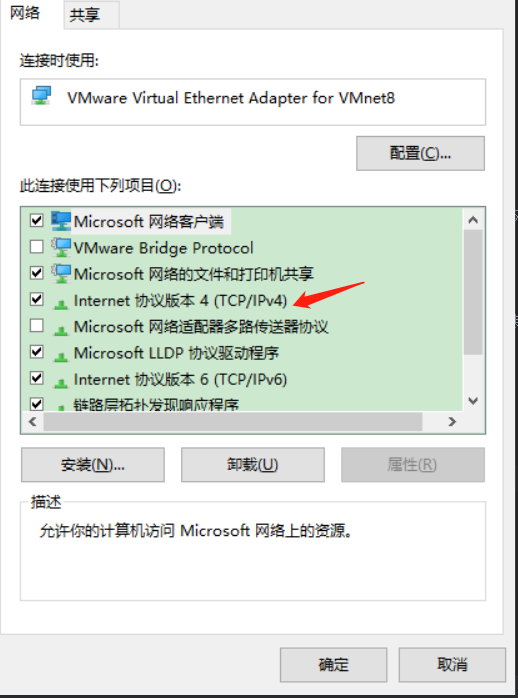 - 在网络适配器界面,选择VMware Network Adapter VMnet8左键双击。