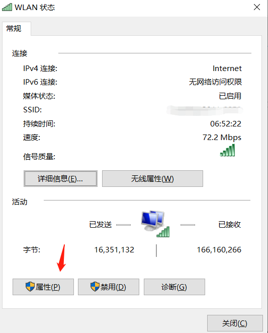 - 进入网卡界面后,点击属性按钮,然后选择 IPV4 左键双击,进入 IPv4 属性界面。