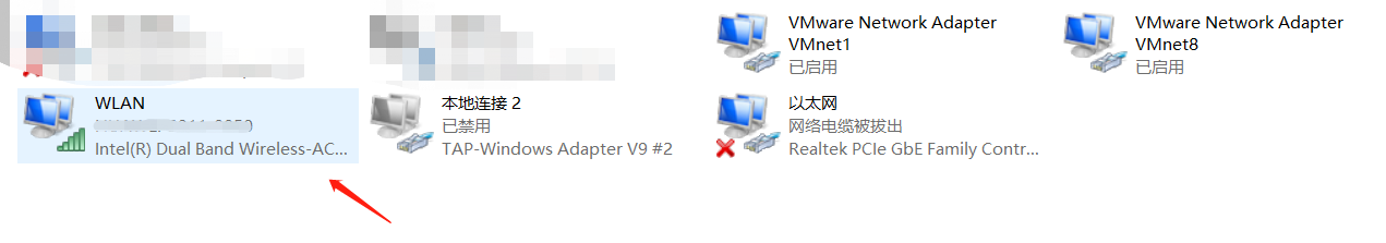 - 进入网络适配器界面后,选择 WIFI 的网卡 WLAN 左键双击。